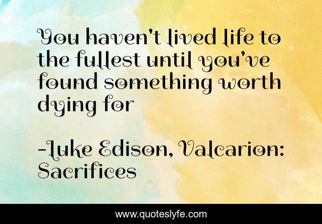 "Luke Edison, Valcarion: Sacrifices Quotes." Quoteslyfe.com, 2025. Sat. 06 Dec. 2025. <https://www.quoteslyfe.com/quote/You-haven-t-lived-life-to-the-82479>.