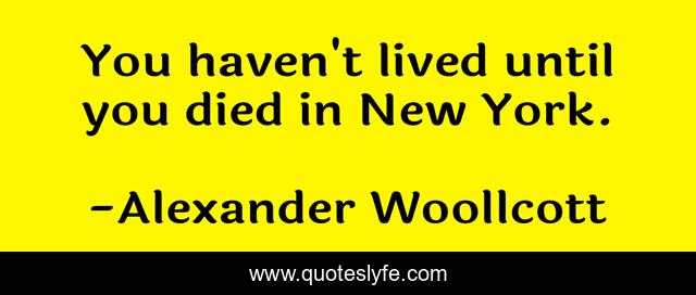 This page presents the quote "You haven't lived until you died in New York.". Author of this quote is Alexander Woollcott. .