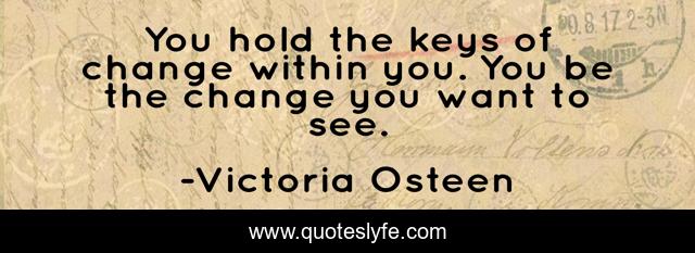 This page presents the quote "You hold the keys of change within you. You be the change you want to see.". Author of this quote is Victoria Osteen. .