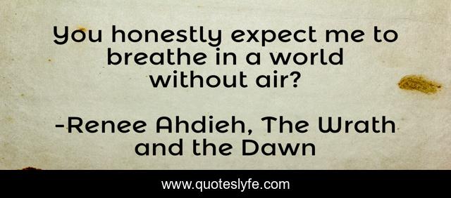 This page presents the quote "You honestly expect me to breathe in a world without air?". Author of this quote is Renee Ahdieh, The Wrath and the Dawn. This quote is about breathe, love, affection,.
