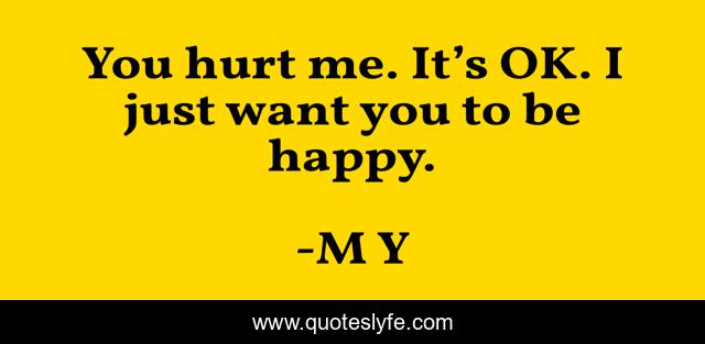 This page presents the quote "You hurt me. It’s OK. I just want you to be happy.". Author of this quote is M Y. .