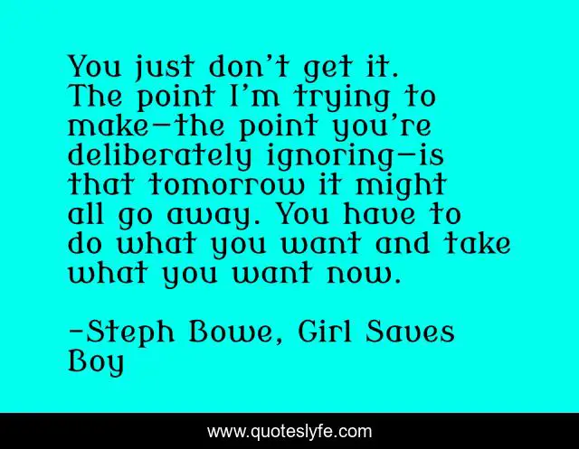 "Steph Bowe, Girl Saves Boy Quotes." Quoteslyfe.com, 2025. Fri. 05 Dec. 2025. <https://www.quoteslyfe.com/quote/You-just-don-t-get-it-The-189257>.