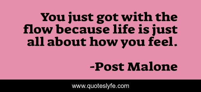 This page presents the quote "You just got with the flow because life is just all about how you feel.". Author of this quote is Post Malone. This quote is about feel, flow,.