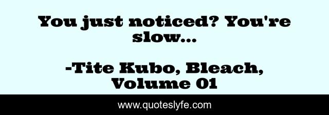 "Tite Kubo, Bleach, Volume 01 Quotes." Quoteslyfe.com, 2025. Mon. 08 Dec. 2025. <https://www.quoteslyfe.com/quote/You-just-noticed-You-re-slow-6976>.