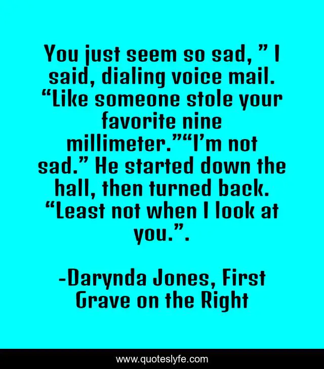 "Darynda Jones, First Grave on the Right Quotes." Quoteslyfe.com, 2025. Mon. 08 Dec. 2025. <https://www.quoteslyfe.com/quote/You-just-seem-so-sad-I-said-131842>.
