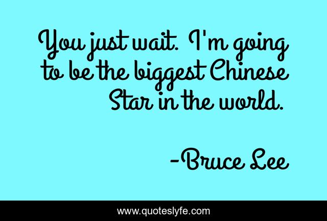 This page presents the quote "You just wait. I'm going to be the biggest Chinese Star in the world.". Author of this quote is Bruce Lee. .