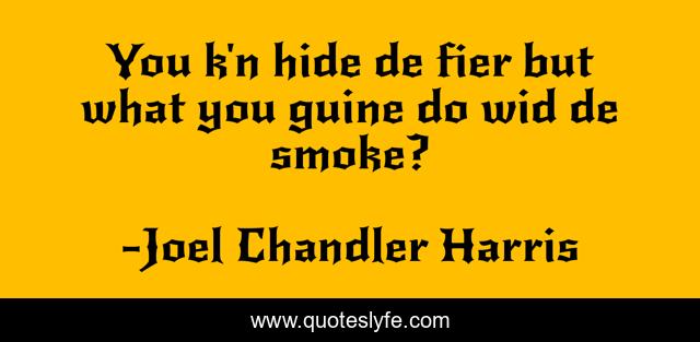 "Joel Chandler Harris Quotes." Quoteslyfe.com, 2025. Fri. 05 Dec. 2025. <https://www.quoteslyfe.com/quote/You-k-n-hide-de-fier-but-262994>.