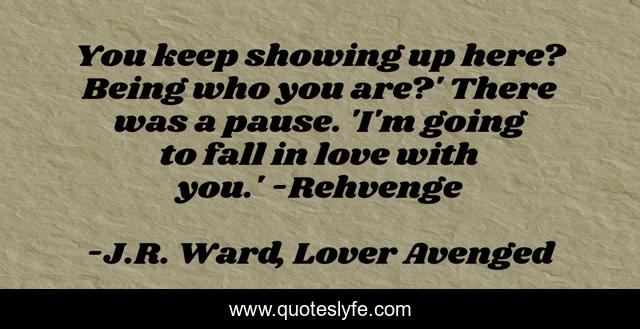 This page presents the quote "You keep showing up here? Being who you are?' There was a pause. 'I'm going to fall in love with you.' -Rehvenge". Author of this quote is J.R. Ward, Lover Avenged. .