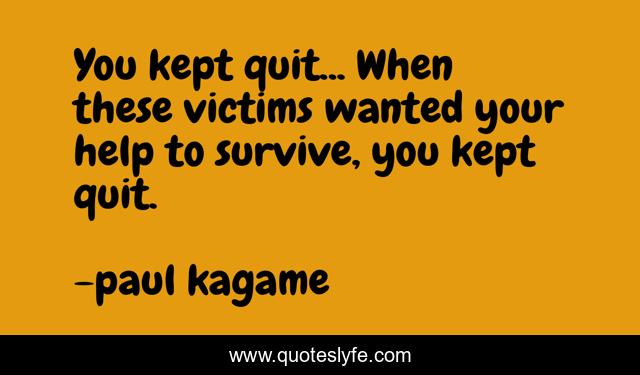 This page presents the quote "You kept quit... When these victims wanted your help to survive, you kept quit.". Author of this quote is paul kagame. This quote is about coward, help,.