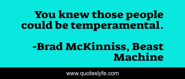 "Brad McKinniss, Beast Machine Quotes." Quoteslyfe.com, 2025. Sat. 06 Dec. 2025. <https://www.quoteslyfe.com/quote/You-knew-those-people-could-be-temperamental-161478>.