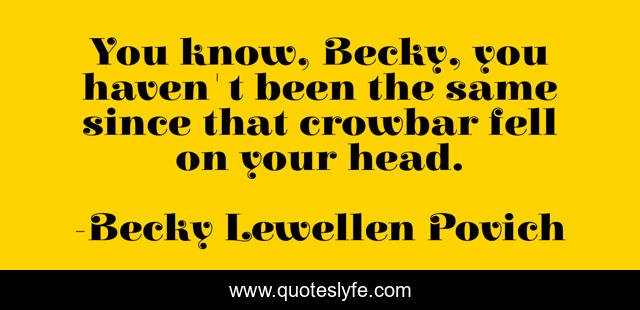This page presents the quote "You know, Becky, you haven't been the same since that crowbar fell on your head.". Author of this quote is Becky Lewellen Povich. This quote is about humorous, humor, memoirs, women-s,.
