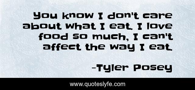 This page presents the quote "You know I don't care about what I eat. I love food so much, I can't affect the way I eat.". Author of this quote is Tyler Posey. This quote is about love, affection, care,.