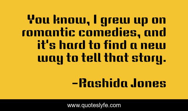This page presents the quote "You know, I grew up on romantic comedies, and it's hard to find a new way to tell that story.". Author of this quote is Rashida Jones. .