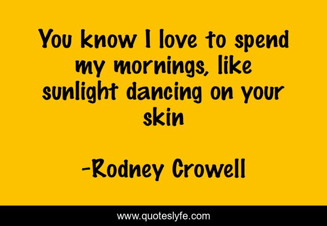 This page presents the quote "You know I love to spend my mornings, like sunlight dancing on your skin". Author of this quote is Rodney Crowell. This quote is about music, lyrics,.