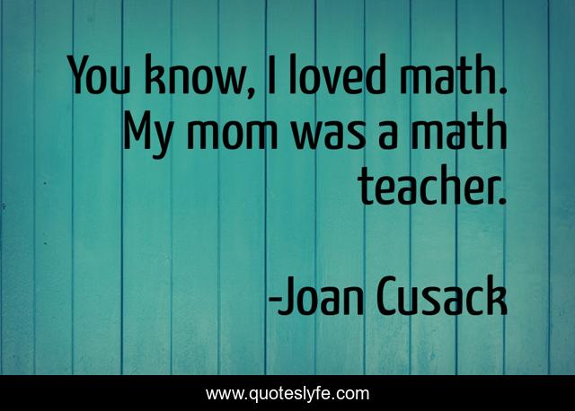 This page presents the quote "You know, I loved math. My mom was a math teacher.". Author of this quote is Joan Cusack. .