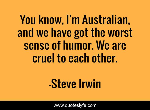 This page presents the quote "You know, I'm Australian, and we have got the worst sense of humor. We are cruel to each other.". Author of this quote is Steve Irwin. .