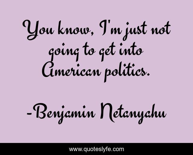 This page presents the quote "You know, I'm just not going to get into American politics.". Author of this quote is Benjamin Netanyahu. .