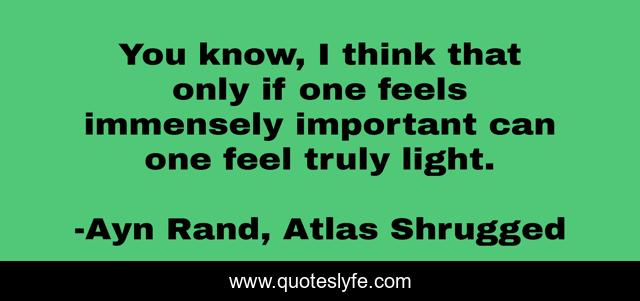 This page presents the quote "You know, I think that only if one feels immensely important can one feel truly light.". Author of this quote is Ayn Rand, Atlas Shrugged. .