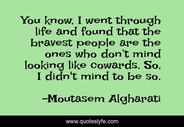 You know, I went through life and found that the bravest people are the ones who don’t mind looking like cowards. So, I didn't mind to be so.