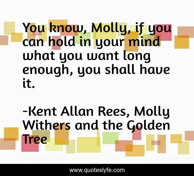 This page presents the quote "You know, Molly, if you can hold in your mind what you want long enough, you shall have it.". Author of this quote is Kent Allan Rees, Molly Withers and the Golden Tree. This quote is about hope, optimism,.