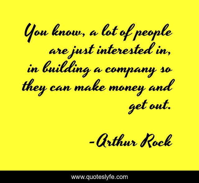 This page presents the quote "You know, a lot of people are just interested in, in building a company so they can make money and get out.". Author of this quote is Arthur Rock. This quote is about building, company, people,.