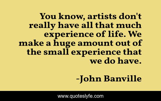 This page presents the quote "You know, artists don't really have all that much experience of life. We make a huge amount out of the small experience that we do have.". Author of this quote is John Banville. This quote is about small, life,.