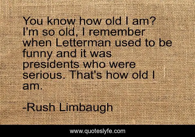 This page presents the quote "You know how old I am? I'm so old, I remember when Letterman used to be funny and it was presidents who were serious. That's how old I am.". Author of this quote is Rush Limbaugh. .