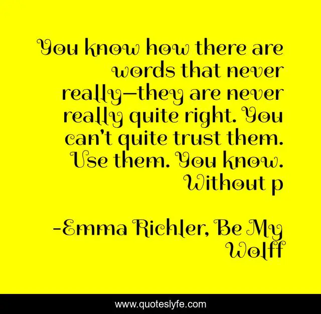 "Emma Richler, Be My Wolff Quotes." Quoteslyfe.com, 2025. Sun. 14 Dec. 2025. <https://www.quoteslyfe.com/quote/You-know-how-there-are-words-that-66811>.
