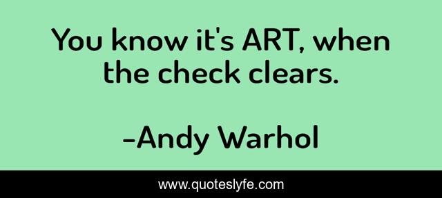 This page presents the quote "You know it's ART, when the check clears.". Author of this quote is Andy Warhol. This quote is about art, artist,.