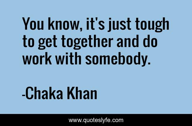 This page presents the quote "You know, it's just tough to get together and do work with somebody.". Author of this quote is Chaka Khan. .