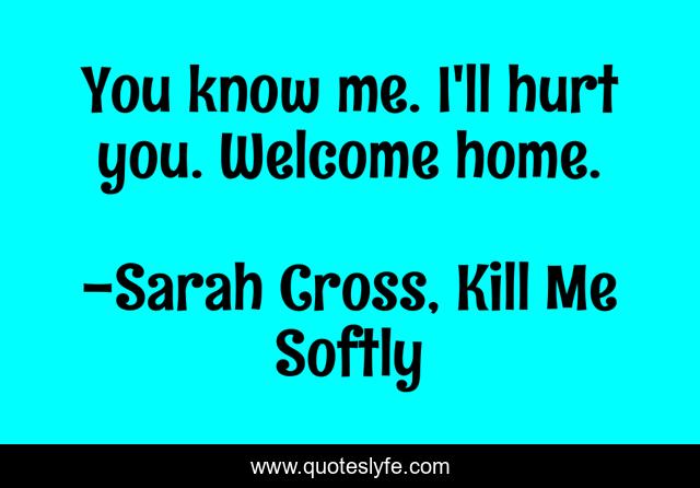 This page presents the quote "You know me. I'll hurt you. Welcome home.". Author of this quote is Sarah Cross, Kill Me Softly. This quote is about foreknowledge, destiny, welcome,.