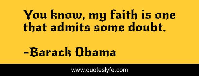 This page presents the quote "You know, my faith is one that admits some doubt.". Author of this quote is Barack Obama. .