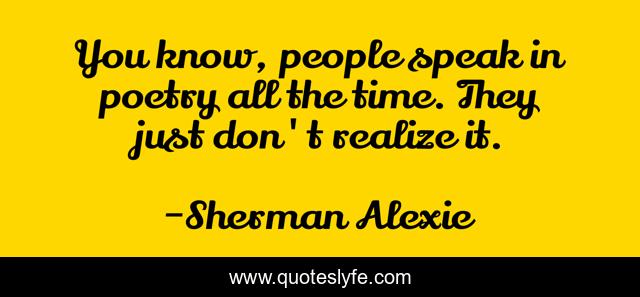 This page presents the quote "You know, people speak in poetry all the time. They just don't realize it.". Author of this quote is Sherman Alexie. This quote is about people, time, speak,.