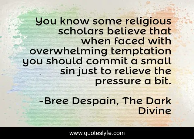 This page presents the quote "You know some religious scholars believe that when faced with overwhelming temptation you should commit a small sin just to relieve the pressure a bit.". Author of this quote is Bree Despain, The Dark Divine. This quote is about dark-divine, forgiveness, sin, daniel-kalbi,.