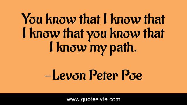 This page presents the quote "You know that I know that I know that you know that I know my path.". Author of this quote is Levon Peter Poe. .