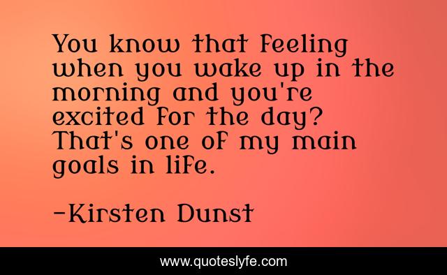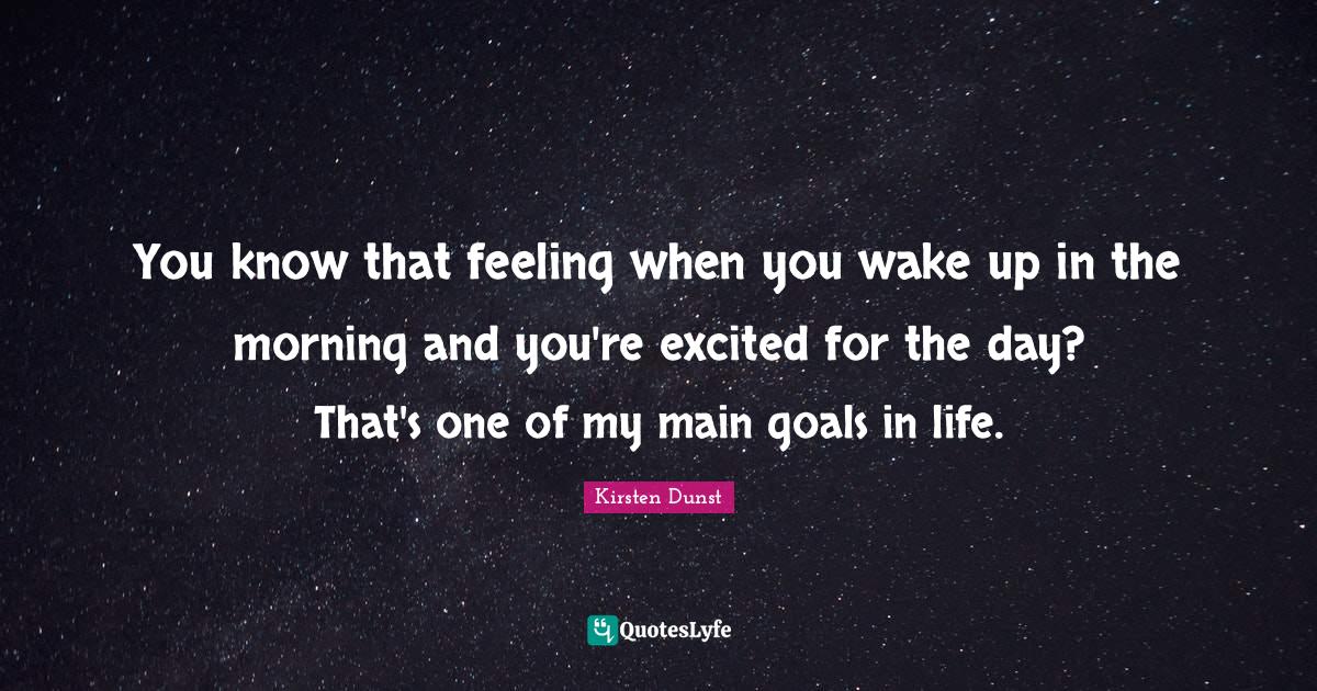 This page presents the quote "You know that feeling when you wake up in the morning and you're excited for the day? That's one of my main goals in life.". Author of this quote is Kirsten Dunst. This quote is about life, day, goals,.