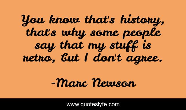 This page presents the quote "You know that's history, that's why some people say that my stuff is retro, but I don't agree.". Author of this quote is Marc Newson. This quote is about why, people,.