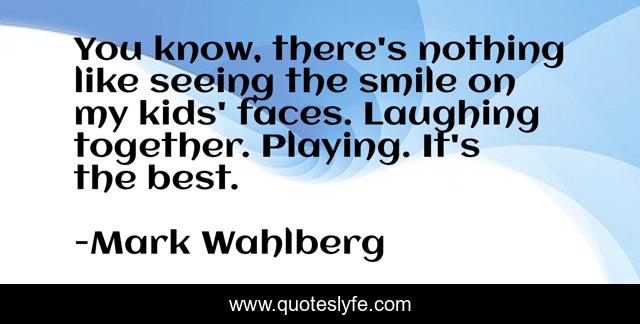 This page presents the quote "You know, there's nothing like seeing the smile on my kids' faces. Laughing together. Playing. It's the best.". Author of this quote is Mark Wahlberg. This quote is about best, together,.