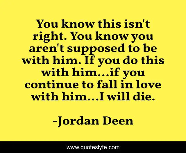 This page presents the quote "You know this isn't right. You know you aren't supposed to be with him. If you do this with him...if you continue to fall in love with him...I will die.". Author of this quote is Jordan Deen. .