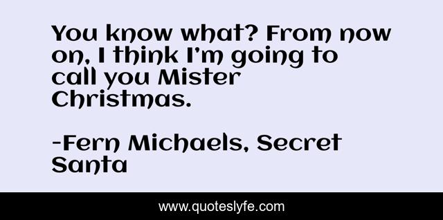 This page presents the quote "You know what? From now on, I think I’m going to call you Mister Christmas.". Author of this quote is Fern Michaels, Secret Santa. This quote is about fern-michaels, holiday, secret-santa, christmas,.