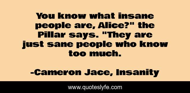 "Cameron Jace, Insanity Quotes." Quoteslyfe.com, 2025. Fri. 05 Dec. 2025. <https://www.quoteslyfe.com/quote/You-know-what-insane-people-are-Alice-232676>.