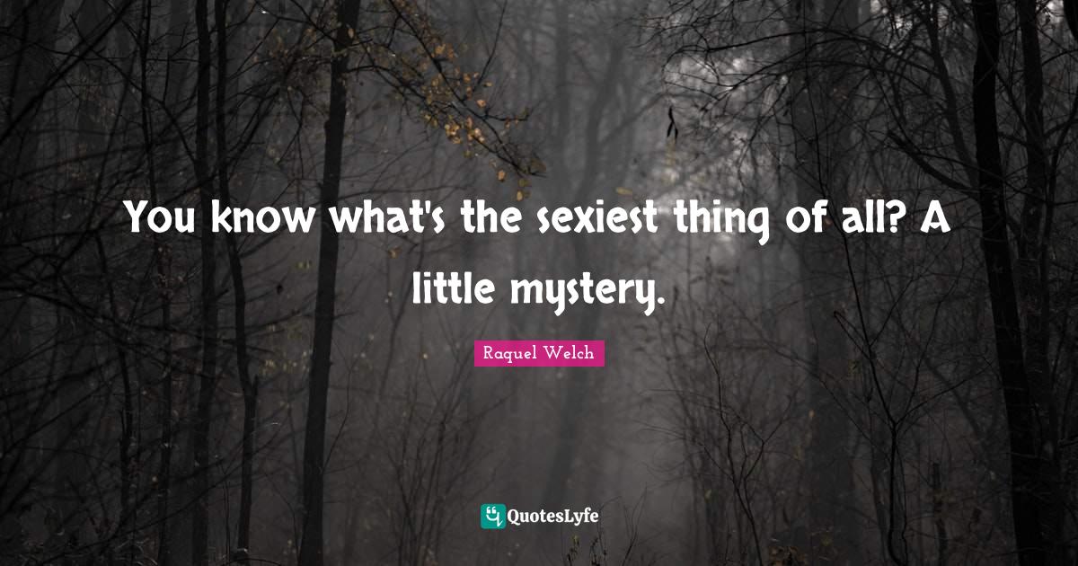 This page presents the quote "You know what's the sexiest thing of all? A little mystery.". Author of this quote is Raquel Welch. This quote is about sexiest, littles, mystery,.