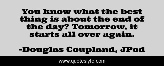 This page presents the quote "You know what the best thing is about the end of the day? Tomorrow, it starts all over again.". Author of this quote is Douglas Coupland, JPod. .