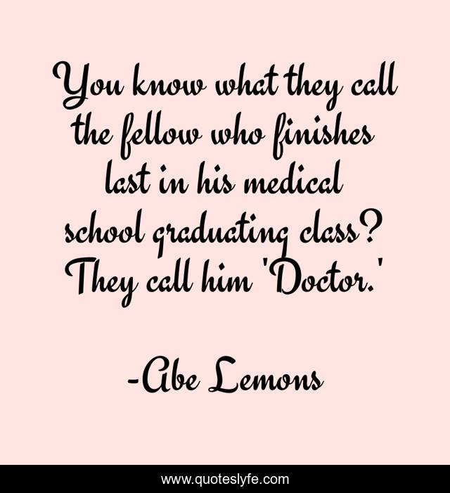 This page presents the quote "You know what they call the fellow who finishes last in his medical school graduating class? They call him 'Doctor.'". Author of this quote is Abe Lemons. This quote is about school, doctor,.