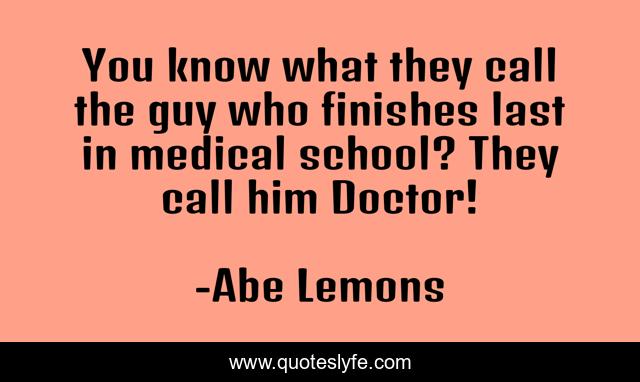 This page presents the quote "You know what they call the guy who finishes last in medical school? They call him Doctor!". Author of this quote is Abe Lemons. .