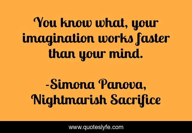 "Simona Panova, Nightmarish Sacrifice Quotes." Quoteslyfe.com, 2025. Mon. 15 Dec. 2025. <https://www.quoteslyfe.com/quote/You-know-what-your-imagination-works-faster-87945>.