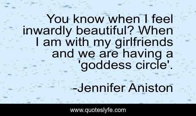 This page presents the quote "You know when I feel inwardly beautiful? When I am with my girlfriends and we are having a 'goddess circle'.". Author of this quote is Jennifer Aniston. .