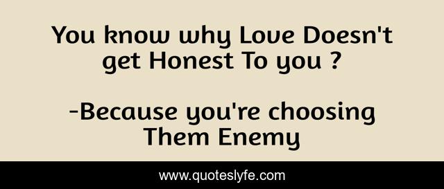 This page presents the quote "You know why Love Doesn't get Honest To you ?". Author of this quote is Because you're choosing Them Enemy. .