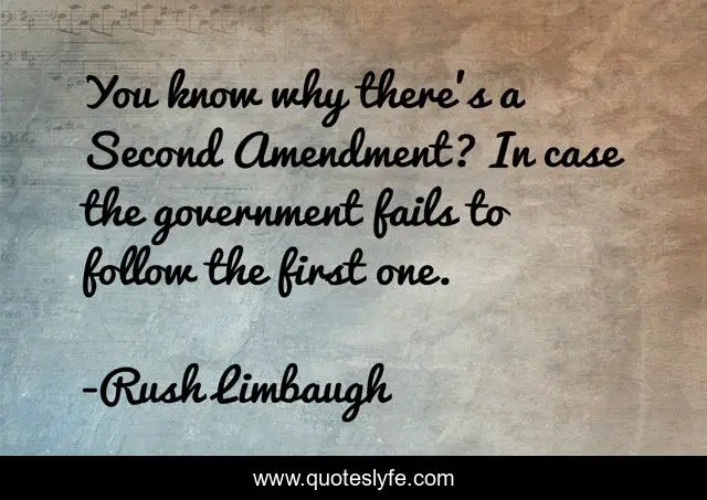 This page presents the quote "You know why there's a Second Amendment? In case the government fails to follow the first one.". Author of this quote is Rush Limbaugh. .