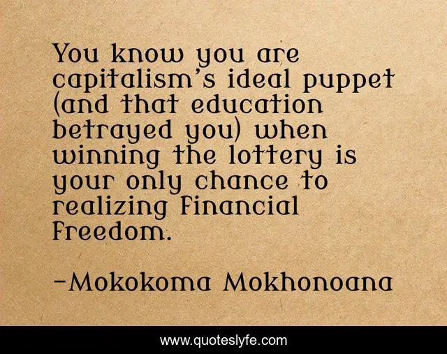 You know you are capitalism’s ideal puppet (and that education betrayed you) when winning the lottery is your only chance to realizing financial freedom.